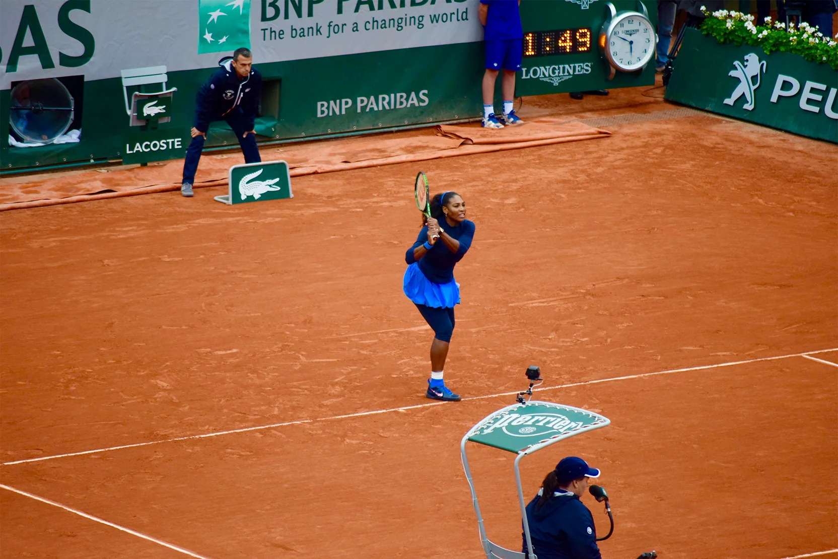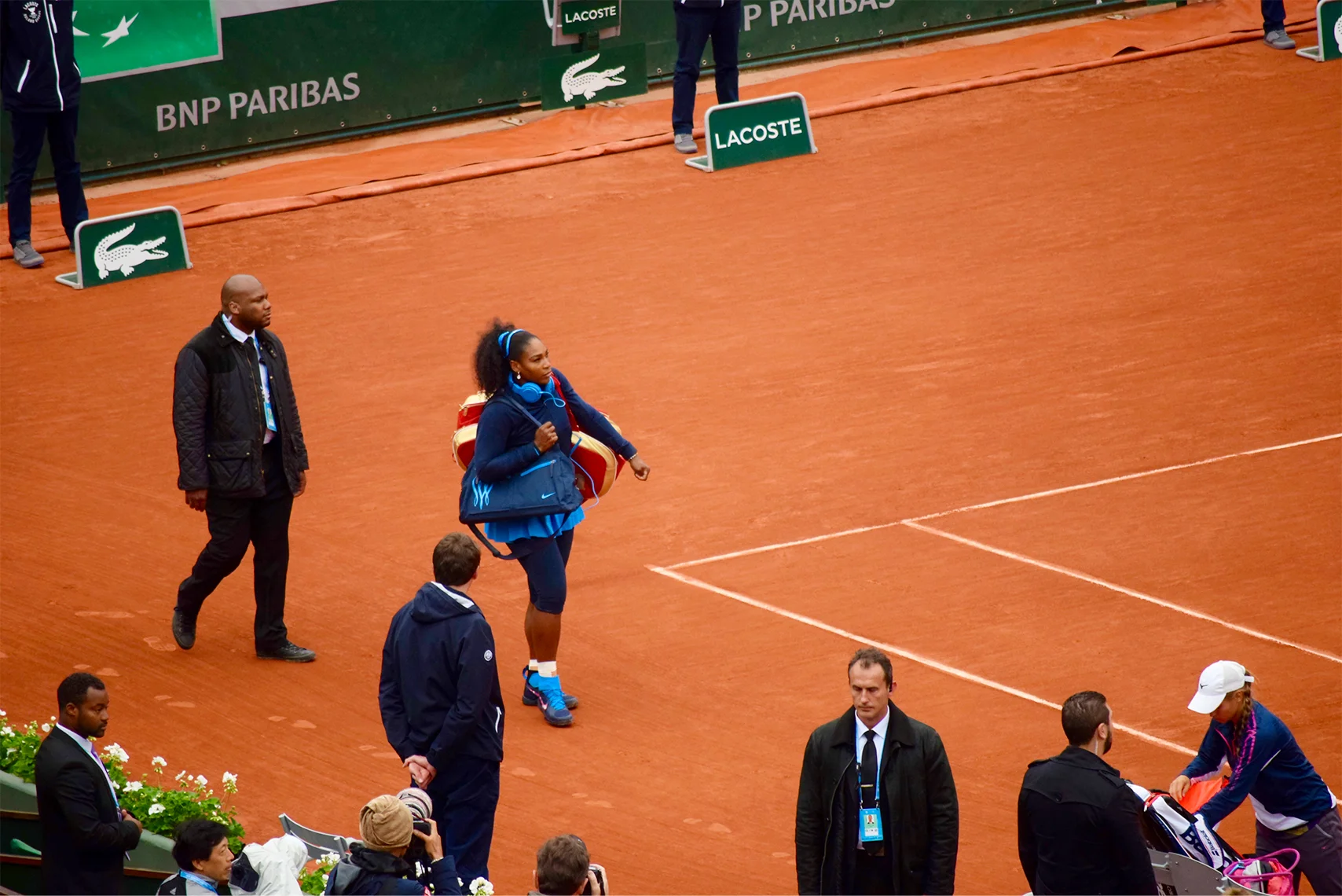 Serena Williams enters court Philippe Chatrier to the applause of the crowd. Photograph: Parisian Experience by Omnyview
