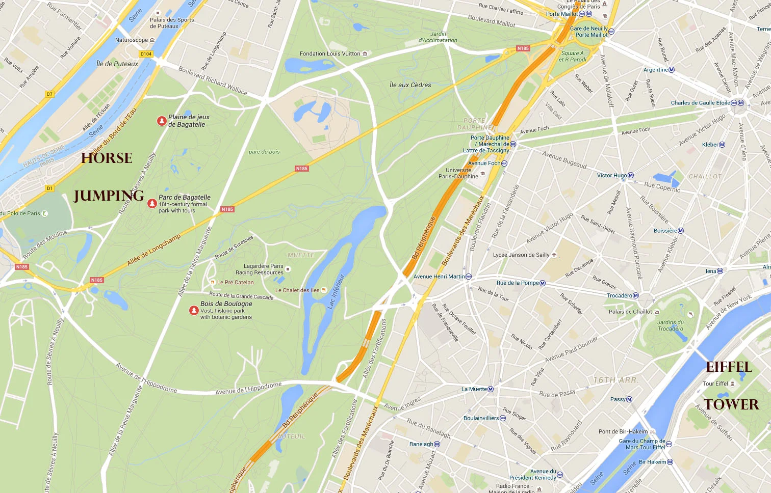 Map of Bois de Boulogne, the location of Longines Paris Eiffel Jumping event. Credits: Google Maps