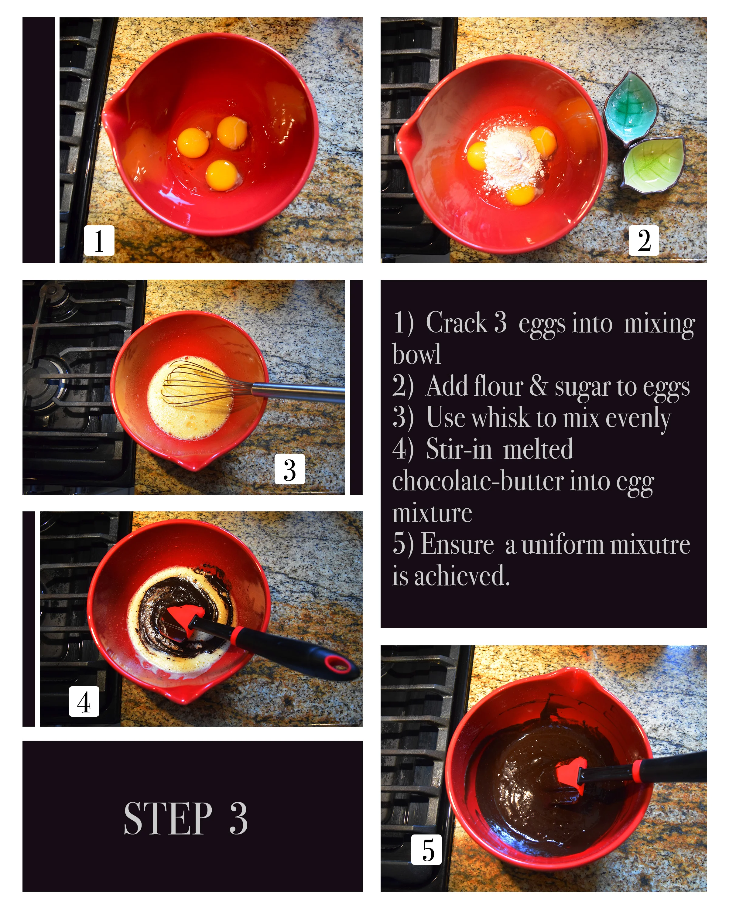 Tip: Ensure your chocolate-butter mixture is not piping hot when you mix it into your egg mixture.